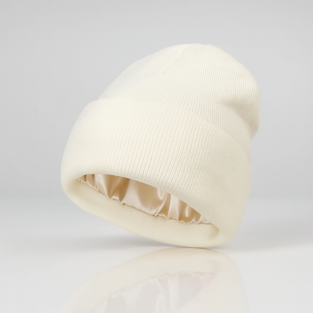Stay stylish even on chilly days. Our satin-lined beanie protects your hair from frizz and keeps it naturally shiny.